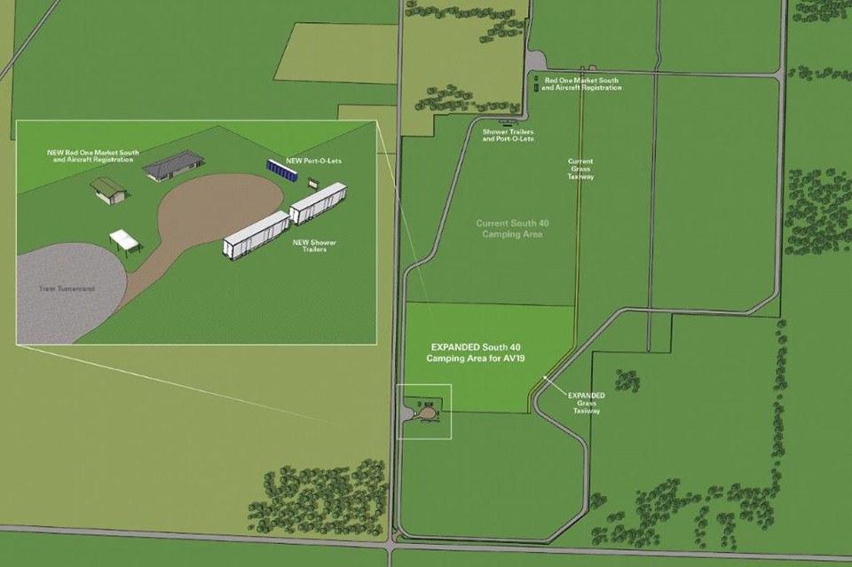 March 21, 2019 - The South 40 area of the EAA AirVenture Oshkosh grounds will be expanded and its facilities improved for the 2019 convention this July.