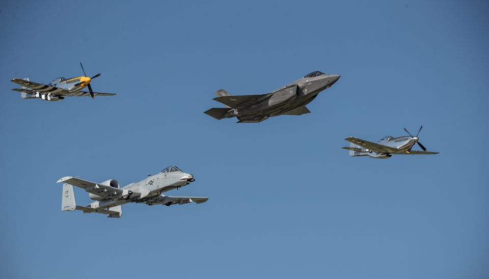 Day: USAF F-22 Demo Team, USAF Heritage Flight, David Martin (Beechcraft Baron), Vicky Benzing (Extra 300S), Kyle Fowler (Rutan Long-EZ), Aerial Firefighting, Kyle Franklin (Dracula), USAF A-10 Demo Team, USAF Heritage Flight, Skip Stewart (Prometheus 2), Redline Airshows (RV-8), The Shetterly Squadron (DR-107 One Design, SNJ-6, RV-8), Kevin Coleman (Extra 300 SHP), U.S. Navy Legacy Flight, Adventures of Aviore, Scott Yoak (P-51 Mustang Quicksilver), USAF F-35 Demo Team, USAF Heritage Flight