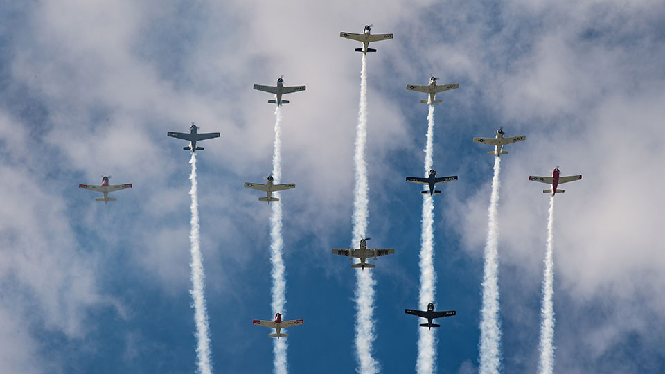 2:30-6 p.m.: Patriot Parachute Team, FLS Microjet and Cri Cri with Ford vehicle drifting, Warbirds of America arrival show, Matt Chapman (Extra 330LX), David Martin (Beechcraft Baron), Jessy Panzer (Pitts Special), seaplane fly-overs, Kyle Franklin (Kitfox S7 Speedster), Luca Bertossio (Swift S1 glider), various RVs, Jerry Kerby (RV-8A Wild Blue), Bill Stein (Edge 540), Matt Younkin (Twin Beech 18), Greg Koontz (Piper Cub), Aeroshell Aerobatic Team (T-6 Texans), Rob Holland (MX2)