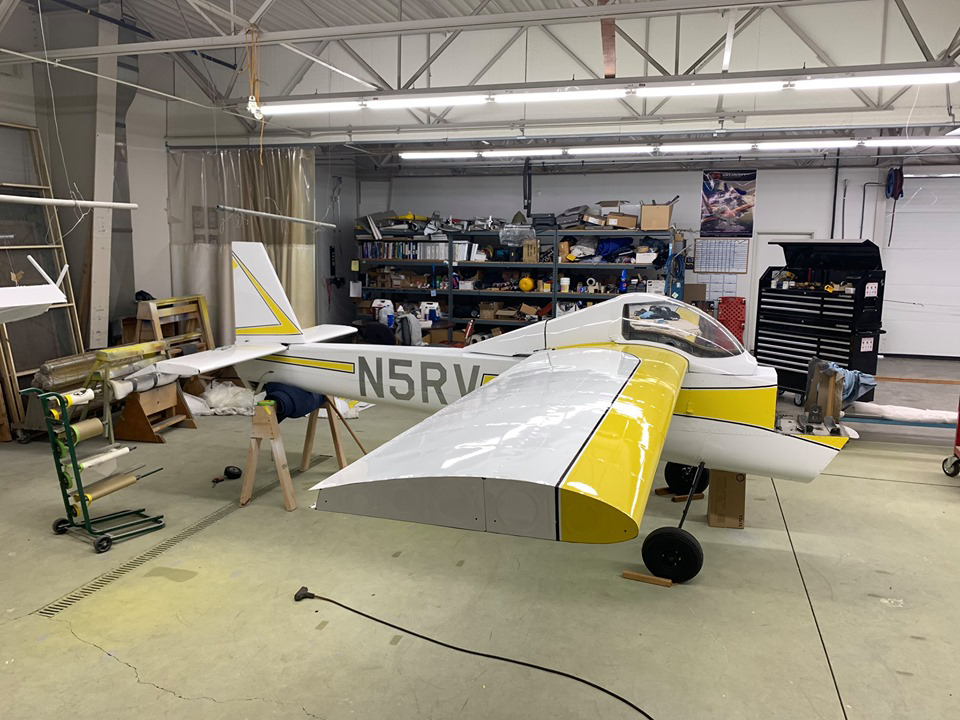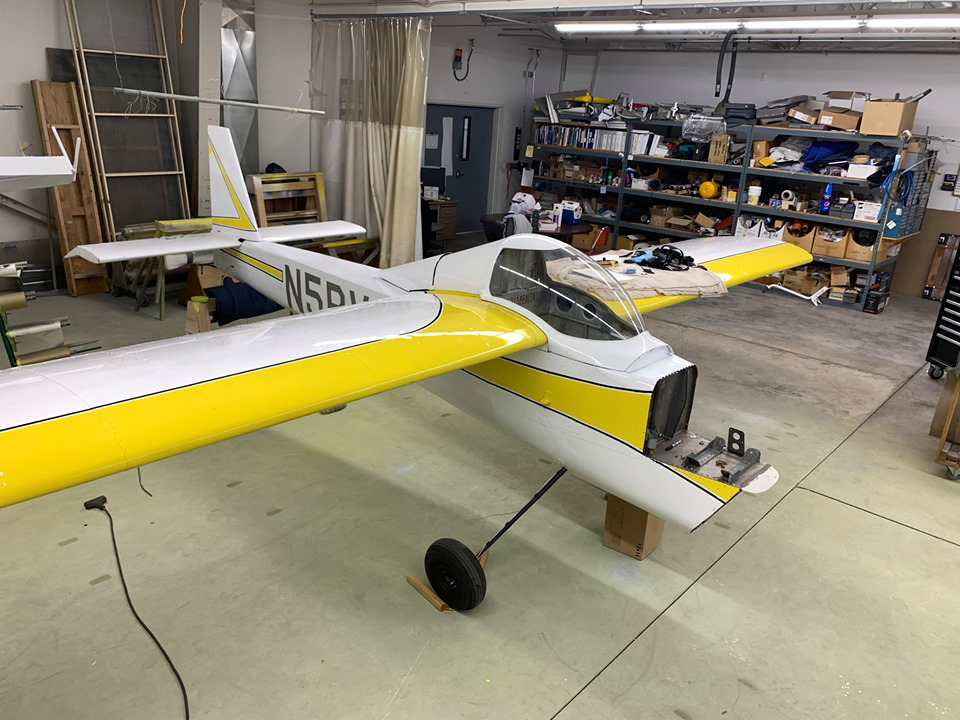 The RV-5 is extremely light, weighing just 315 pounds including the engine, and is unique compared to Van's commercial line of aircraft due to its mid-wing configuration. The ultimate goal of the restoration is to get the aircraft airworthy and flying again for the first time in decades, although it will not fly at Oshkosh.