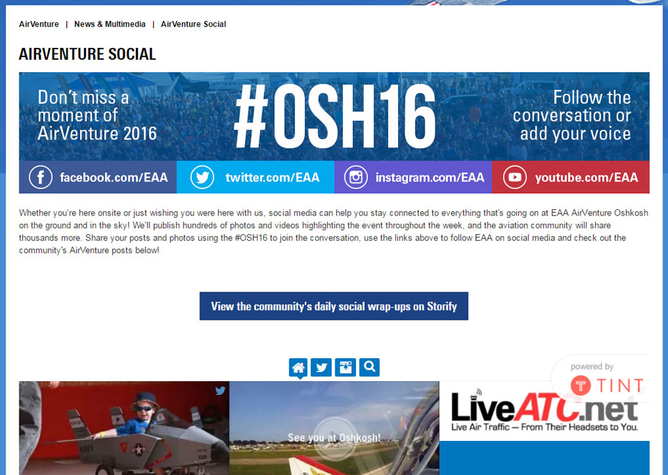 AirVenture Social will help you stay up-to-date with all things #OSH16, all the time. We’ll publish hundreds of photos and videos on Facebook, Twitter, Instagram, and YouTube that highlight the event, and the aviation community will share thousands more. Follow the conversation and add your own voice using the #OSH16 tag on your favorite platforms and don’t forget to show us your best #EAASelfie.