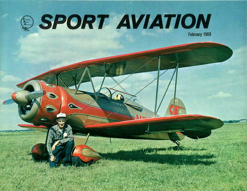 Brad first designed and built the airplane in 18 months from 1965-67, after recovering from a heart attack. He had always been fond of the Great Lakes biplane, but decided to come up with his own design that would avoid the expense of a radial engine.