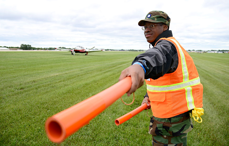 The CAP members support AirVenture by marshalling aircraft on the flightline, tracking and finding overdue aircraft, and interacting with the public. National Blue Beret participants also often support the CAP National Recruiting booth, staffed by Wisconsin Wing members. In addition, cadets are given time to explore the grounds, attend workshops and presentations, investigate educational and career opportunities, and everything else the convention has to offer. Ultimately, cadets learn how to become leaders while taking on the responsibility of serving others – in this case, the general aviation community and AirVenture visitors.