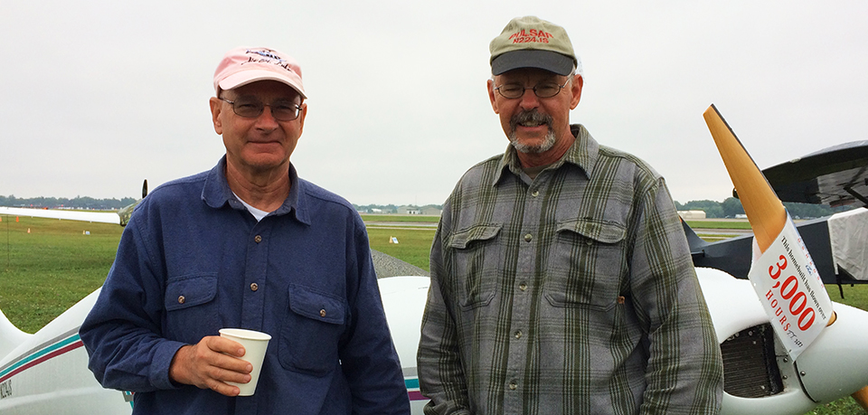At Homebuilders Headquarters, Jim Schmitt from Evansville, Indiana, and Jim Price from Boise, Idaho, were deep in hangar talk, Schmitt’s Pulsar and Price’s Long-EZ parked within sight on the flightline. With more than 65 Oshkosh fly-ins between them, they provided the veterans’ perspective on the gray skies. “There’s always plenty of activity to do when it’s not good weather,” Schmitt said.