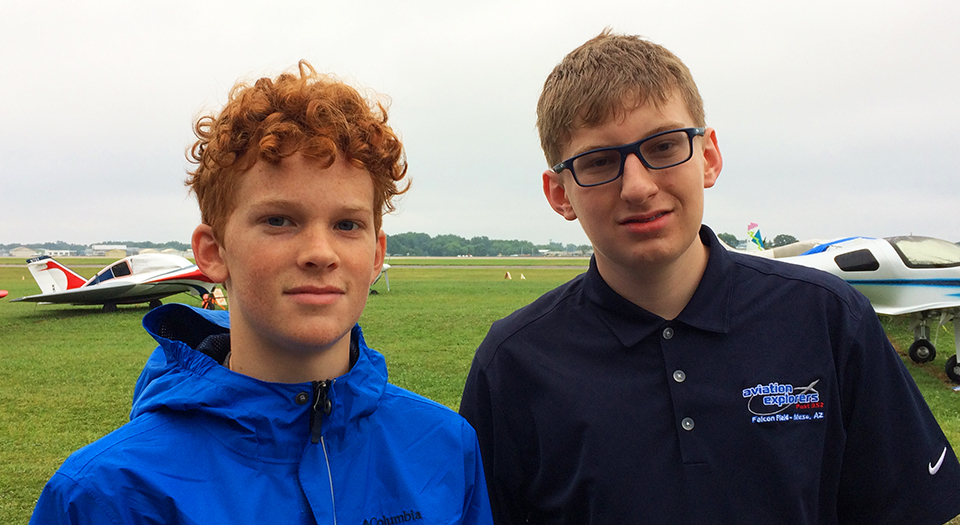 The boys, members of Mesa’s Aviation Explorers Post 352, are visiting AirVenture for the first time, and the drizzle was almost welcome. “The weather’s pretty nice,” Aiden said. “Phoenix is 100 degrees.”