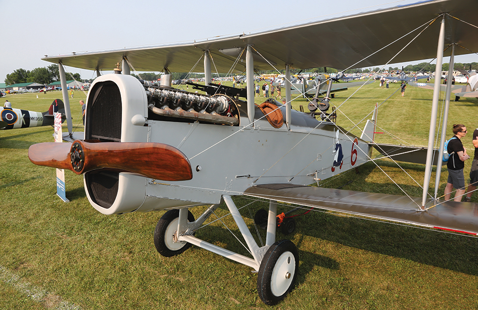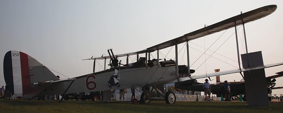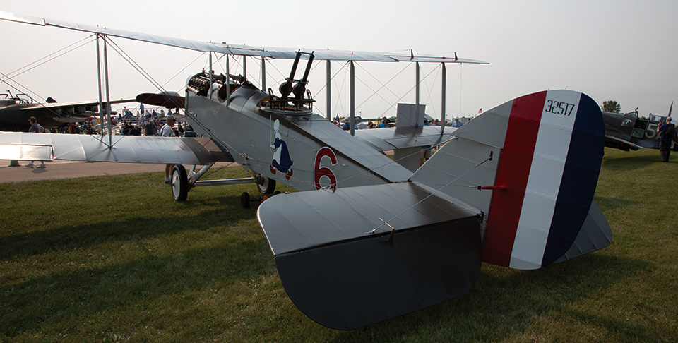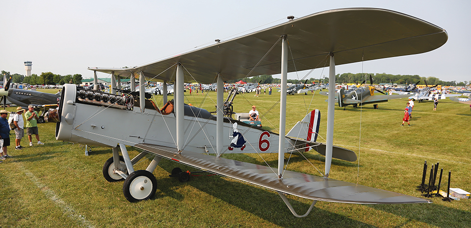 On the Oshkosh grounds, the DH-4 impresses visitors because of its large size and its pristine vintage appearance. Old black and white photos only go so far in describing the American DH-4s’ camouflage scheme; the actual airplane displays it eloquently. And that motivates Dorian, who said the group rebuilt this rare icon “to pay tribute to American aviation.” He delights in calling the World War I biplane warbird No. 1.