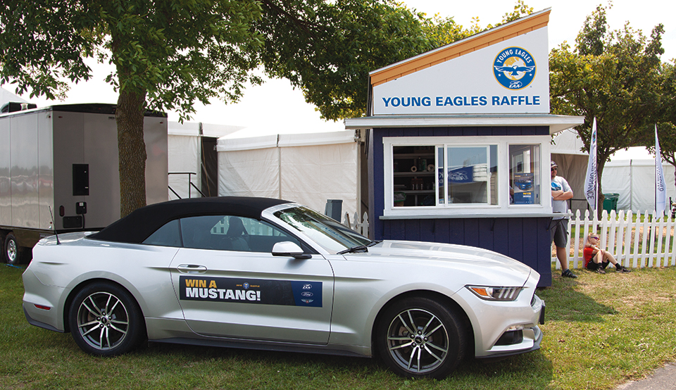 Since the early years of EAA’s Young Eagles program, the EAA Young Eagles Raffle has supported Young Eagles’ mission of spreading The Spirit of Aviation by raffling off a new car, which has been a Ford Mustang since 2007.