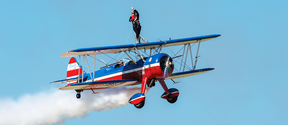 Greg performed in the AT-6 for 16 years before he sold the Texan to make room for his current favorite air show plane: the FM-2 Wildcat. His other favorite airplane, if he had to choose one, would be his 450 Super Stearman that he began flying wing-walking routines in, which he said have had a great impact on his success.