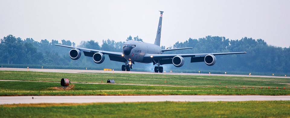 The massive tanker had a short flight from its home base, which was a good thing according to Wisconsin Air National Guard Master Sgt. and KC-135 crew chief Kelly Lawrence.