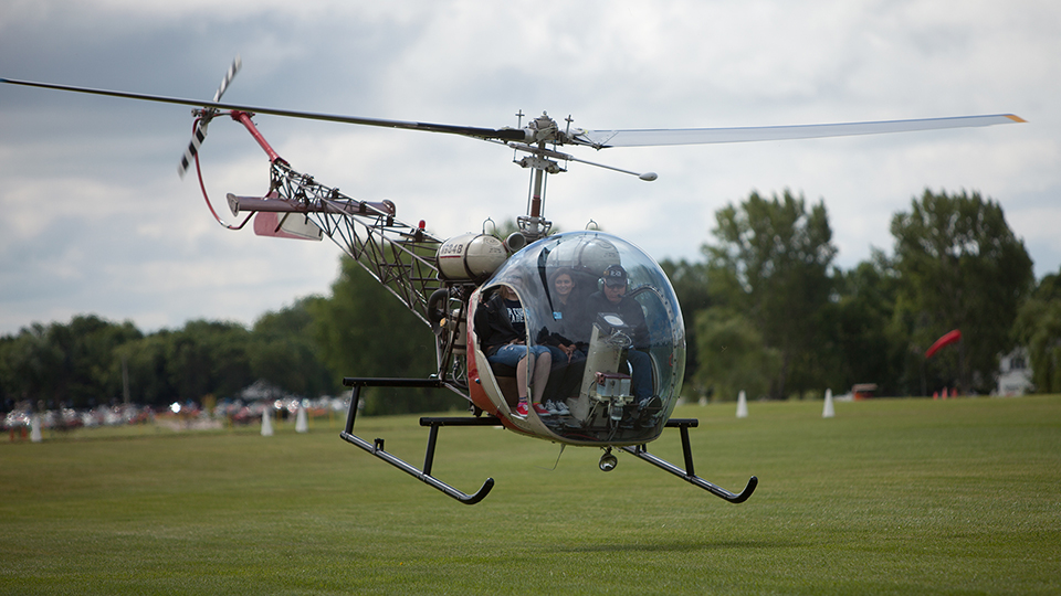 In 1983, the Bell 47’s original pilot retired and Tim took over. At the time, helicopter flights were geared more toward the media and focused on safety and surveillance of the AirVenture grounds. During the 10 years that followed, Tim was instrumental in growing the operation into the flight experience it is today.