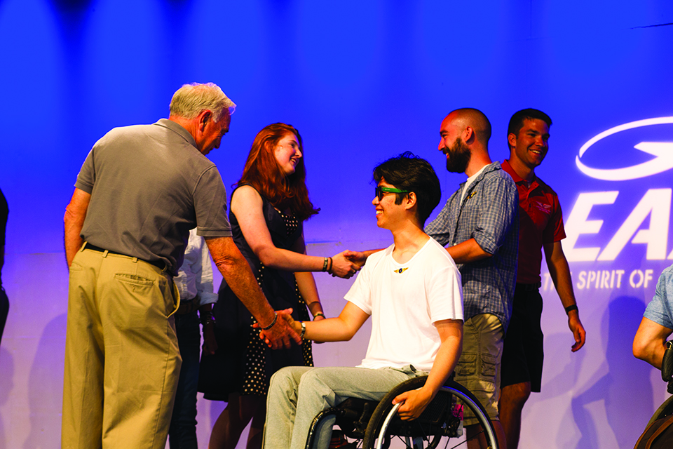 July 25, 2017 - On Tuesday, members of the Able Flight class of 2017 received their wings on stage at Theater in the Woods during EAA AirVenture Oshkosh.