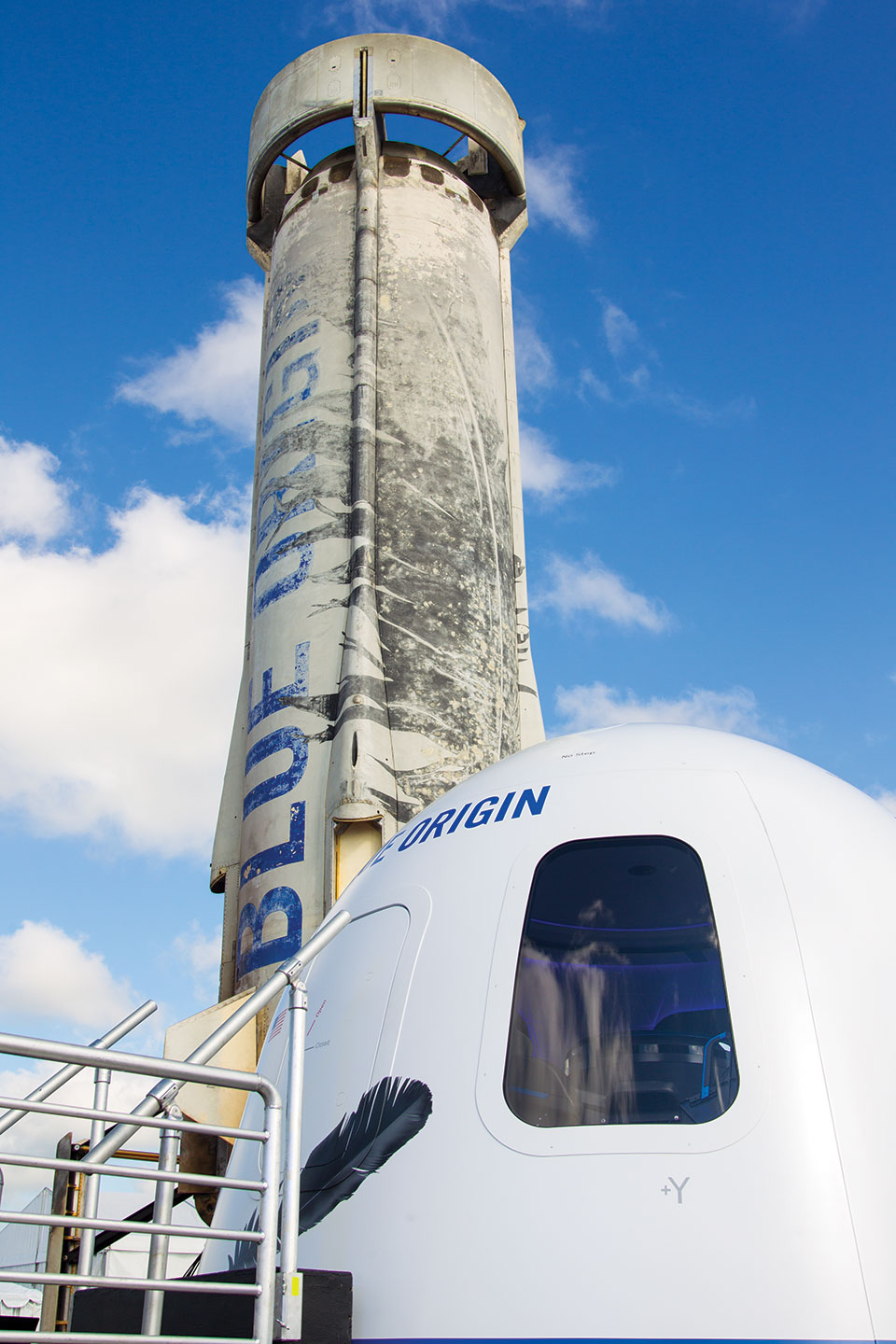 The New Shepard is the reusable vertical takeoff and landing launch system for suborbital space tourism under development by Blue Origin, a company founded by Amazon’s Jeff Bezos. The rocket achieved its milestone first vertical landing on November 23, 2015, and after minimal refurbishment the same booster made four subsequent flights in 2016, the last of which happened in October. This is the first public display of the New Shepard.