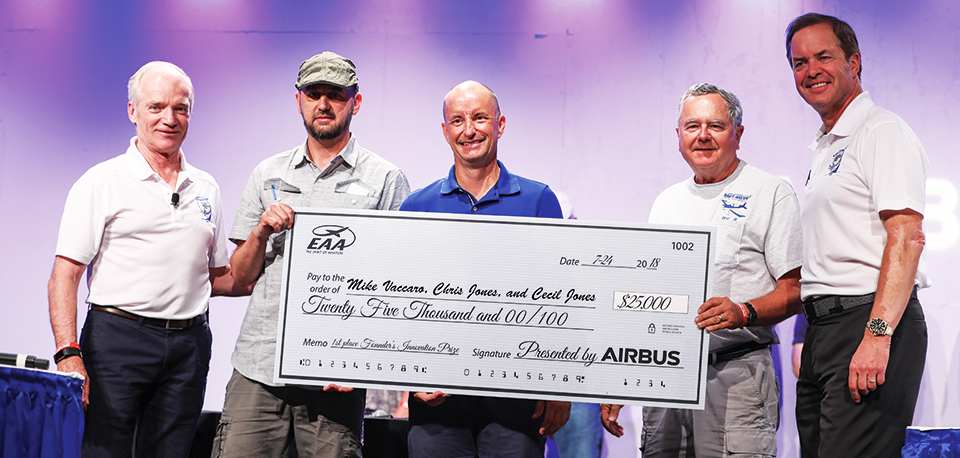 July 25, 2018 - Mike Vaccaro, Chris Jones, and Cecil Jones’ proposal for solving loss of control situations was deemed Tuesday night’s winner of the 2018 Founder’s Innovation Prize. With the win, their project, titled Enhanced Aural AOA Logic, gets a monetary boost of $25,000. The cash prize, sponsored by Airbus, is to help the team further develop and test the concept and, ideally, make it commercially viable.