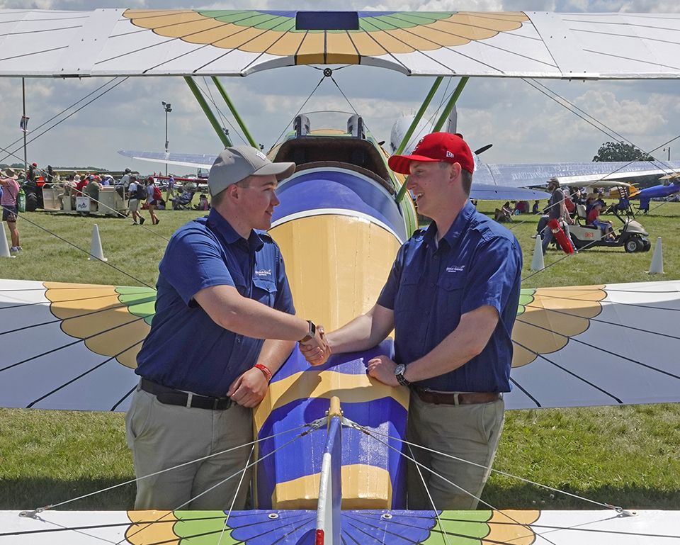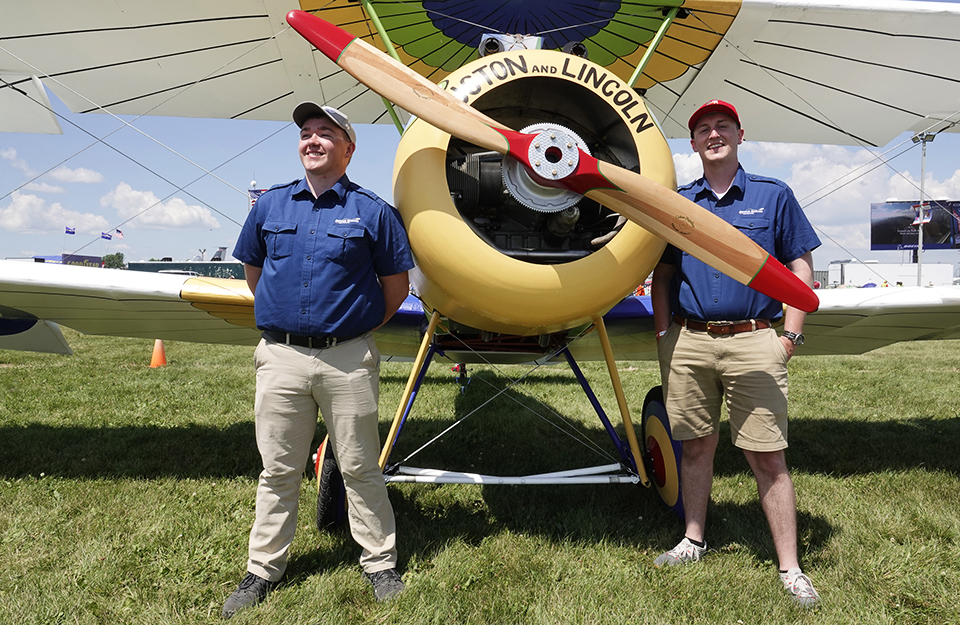 Casey is passionate about aviation and education, and he sought a way to make a century-old biplane design relevant to today’s students. The construction project, he said, equips students with valuable experience that adds to the bona fides of a resume. Brock Hoops and Thomas Walbom, mechanical engineering majors from the University of Toledo who worked on construction of the biplane, are helping Casey show the Camel at AirVenture this year.