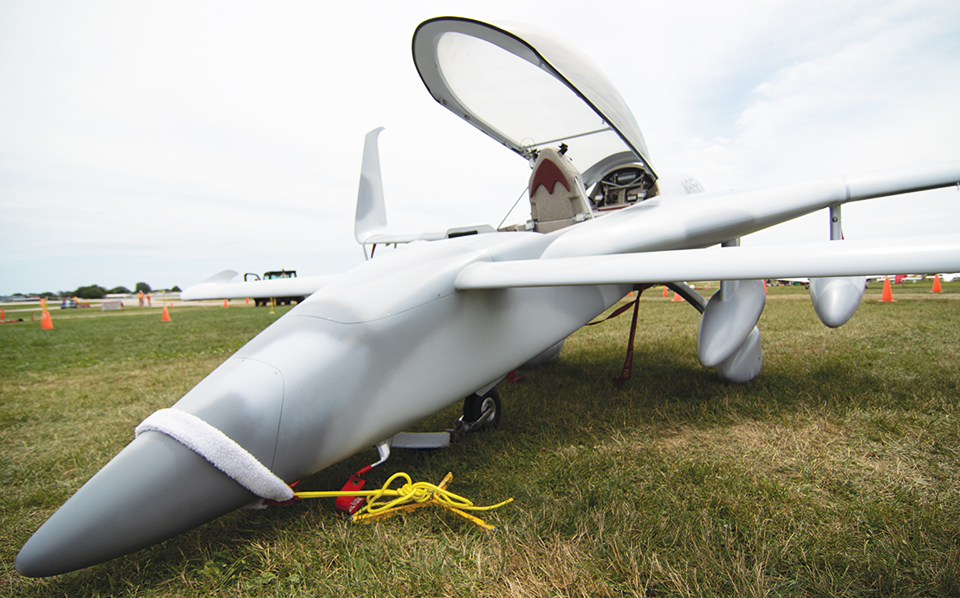 July 25, 2018 - Upgrading from piston to jet power is more affordable than you may realize, and the proof — a Rutan-inspired canard aircraft built around a GE T58 turbine engine — is on the flightline just beyond the Brown Arch.