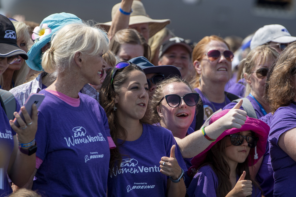 "It was so exciting to see so much enthusiasm and so many purple shirts on the plaza today. We really want to thank Boeing as a major sponsor of WomenVenture, and of course all of the wonderful and amazing women who have been able to come together," said Heather Penney, EAA Aviation Foundation Women Soar Society Advisory Board chair, EAA board of directors member, and Sr. Fellow at Mitchell Institute. "People don't realize how much talent, how much passion, how much competence, how much expertise that women bring to the table. So to be able to create these connections, make new friendships, and renew and strengthen old friendships is fantastic, and we can't wait to see everyone again next year!"
