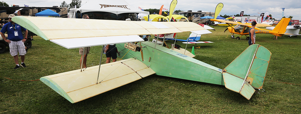 July 26, 2018 - Dayton, Ohio, has been the birthplace of aviation innovators and innovative aircraft for more than a century now, and the latest of both have alighted at EAA AirVenture Oshkosh 2018. Aero modeler Peter Sripol, EAA 1283911, is debuting what he calls his “first real airplane,” the Sky Pupper, a homebuilt one-place, electric-powered ultralight made almost entirely of foam, which is on display just north of the Tall Pines Café.