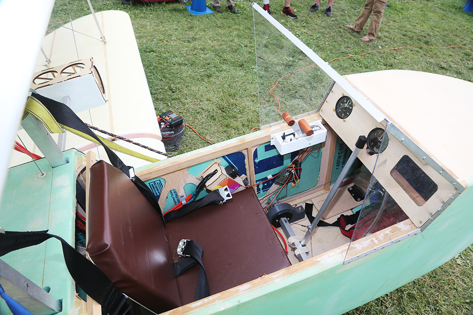 The instrument panel, a study in minimalism, has only an altimeter and airspeed indicator, which he describes as “basically useless,” and a cutout where a radio or other avionics could be fitted.
