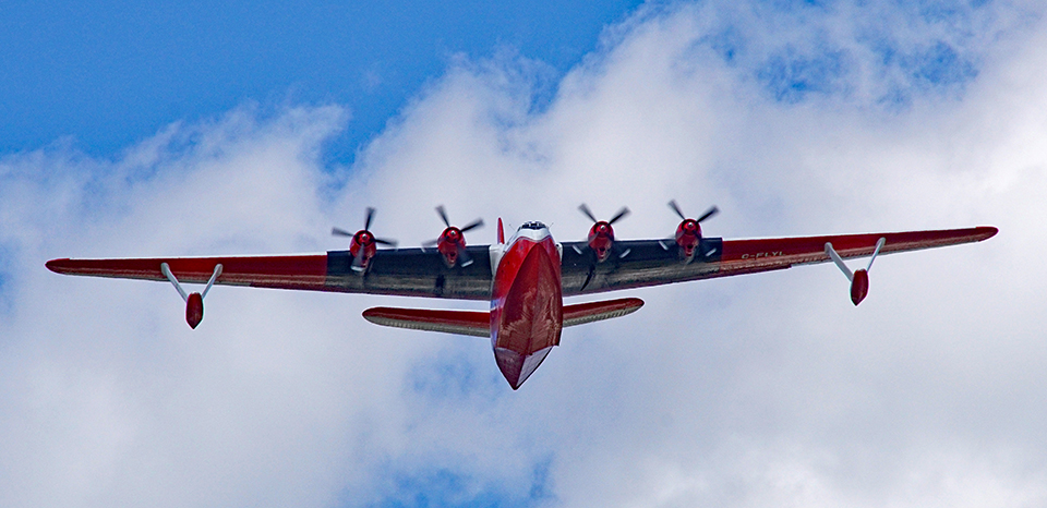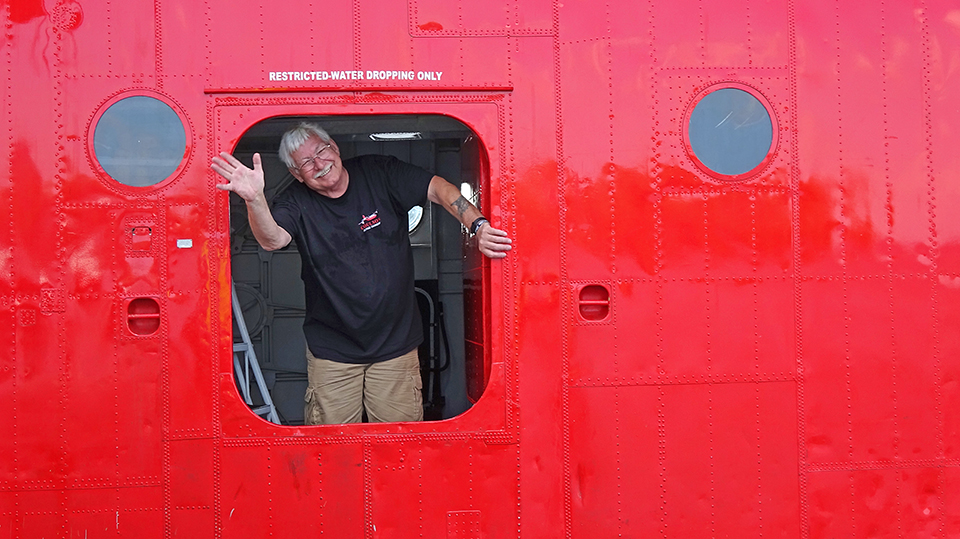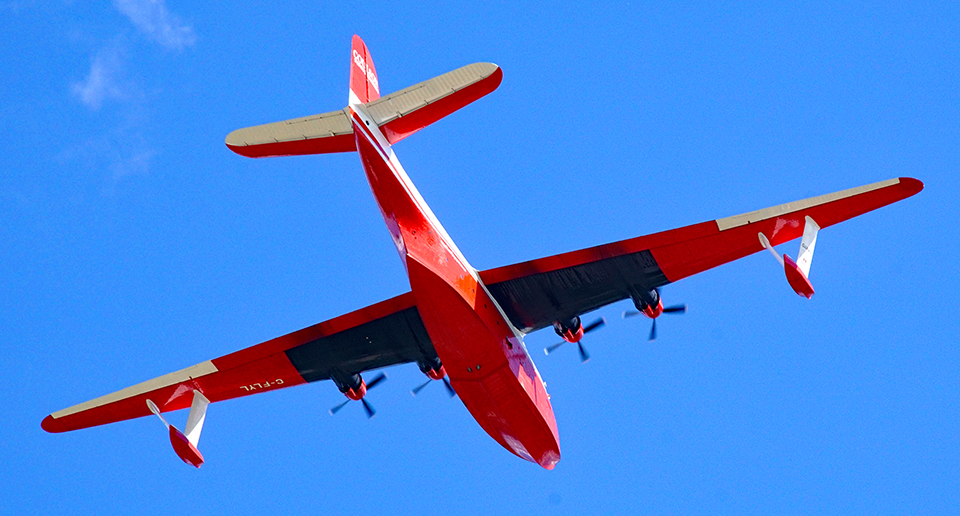 Based on beautiful Sproat Lake in the middle of Vancouver Island, in recent years Hawaii Mars has occasionally ranged as far as southern California on firefighting contracts. Able to scoop and release more than 7,000 gallons of water, the Mars was the reigning champion air tanker until the advent of super jet tankers converted from DC-10s and 747s.
