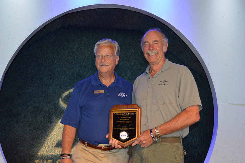 In addition, Pelton presented the Chairman’s Award to Kermit Weeks. The award personally acknowledges a member whose participation and contributions represent the “essence” of EAA.
