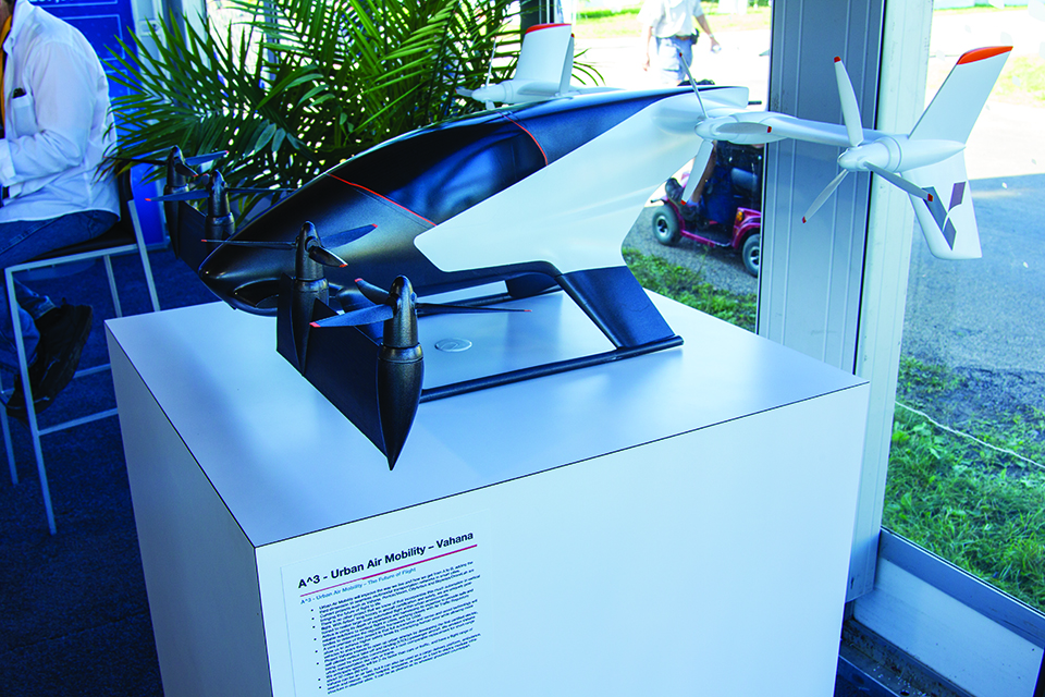 Vahana is a self-piloted aircraft designed to carry a single passenger or cargo, which Airbus wants to make “the first certified passenger aircraft without a pilot.” A small-scale mock-up of Vahana is among the “urban air mobility” vehicles on display at the Airbus Pavilion (427, 436). Vehicle design is complete, many critical subsystems have been developed or procured, and production partnerships are established, Airbus said. A full-size prototype is scheduled for completion by year’s end, and a “productizable” demonstrator by 2020. Meanwhile, Airbus is testing Voom, an on-demand-via-app helicopter air taxi service in Sao Paulo, Brazil.
