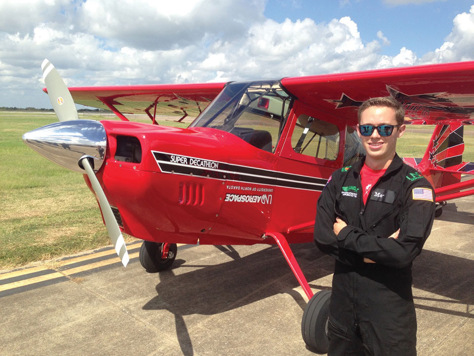 Nick moved to North Dakota to attend UND and double-majored in air traffic control and aviation management. In his junior year, Nick enrolled in an aerobatics course, and his skill really improved. He joined the University of North Dakota Aerobatics Team under the coaching of Michael Lents and Jonathan Sepulveda for the 2016 competition season, flying in the Primary power category. He earned two first-place trophies, a bronze trophy, and a grassroots medal, scoring an overall average of 85.44 percent. Nick cannot thank his coaches enough for their guidance and support. He graduated from UND with honors in December 2016.