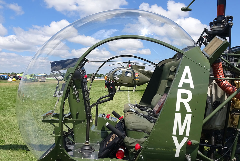 July 27, 2017 - The Warbirds area hosts hundreds of ex-military aircraft during AirVenture 2017. They’re not all Mustangs and Mitchells, though. Several helicopters have settled on the grass, resplendent in military paint and markings. They bear witness to the role rotary-wing aircraft had in the military for decades.