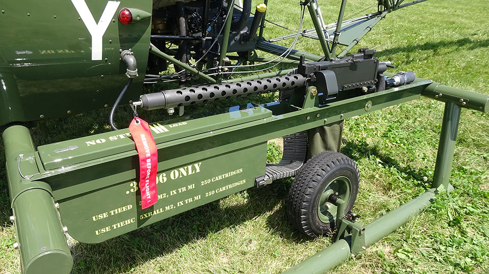 Reid found documentation showing some Army E-models that were modified in 1957 to carry a single M37 .30-caliber machine gun on either side of the cockpit, fixed to fire forward. Tested at Fort Rucker, Alabama, those little H-13Es were the beginning of gunship helicopters, Reid said. Some went overseas, as his research indicates 60 armed H-13Es were used in Vietnam. So, the quest was on to re-create an armed H-13E. Reid found some photos and blueprints of the installation. He made his own plans for the mounts, and some of the equipment by “using pictures and scaling it,” Reid said.
