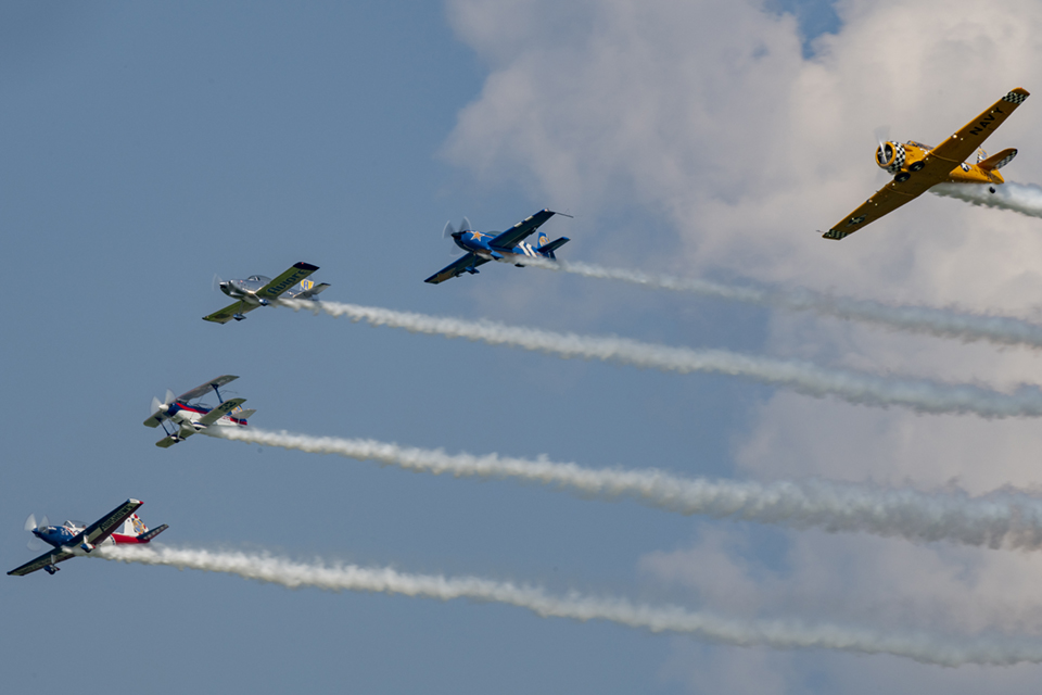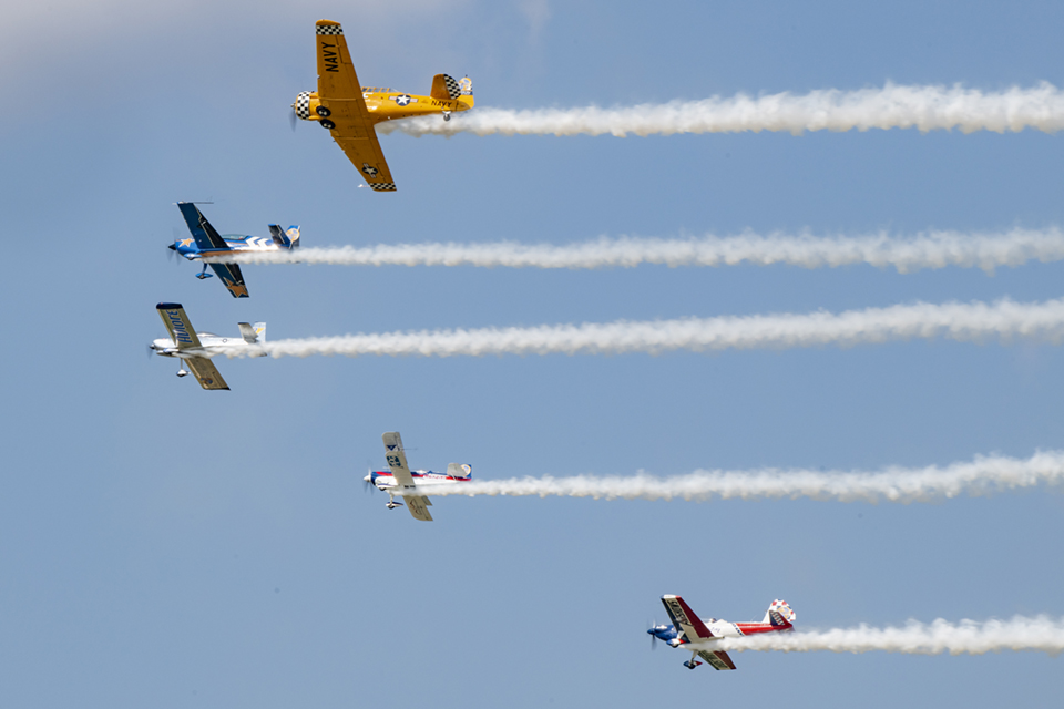 The Shetterly Squadron (DR-107 One Design, SNJ-6, RV-8), whose pilots are also part of the Adventures of Aviore act, will also perform on Sunday.