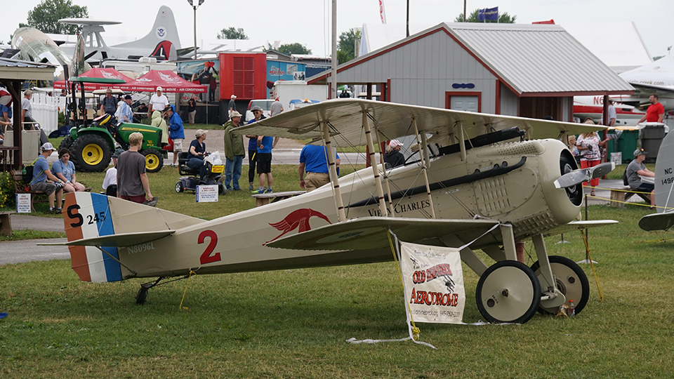 Meanwhile, parked nearby in the Vintage show area, a replica SPAD VII French fighter, concealing a modern Continental engine, is a visitor from the legendary World War I collection of Cole Palen in upstate New York. Baughman said the community of World War I aircraft operators tends to collaborate, swapping parts among themselves to help projects in work. “It’s a small world, and you see people trying to help out.” Which is important, especially when one is dealing with technology a century old.