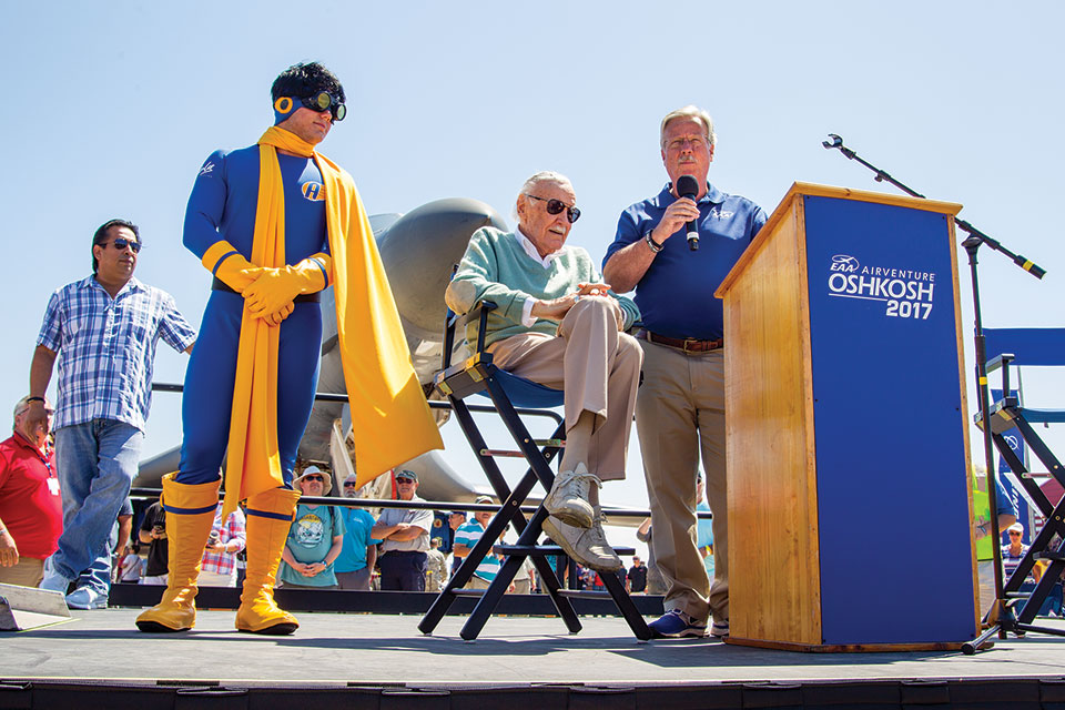 July 28, 2017 - Marvel Comics creator Stan Lee and EAA CEO and Chairman Jack J. Pelton introduced a new superhero named Aviore yesterday at EAA AirVenture Oshkosh 2017. Aviore’s mission is to promote The Spirit of Aviation and the EAA’s Young Eagles program.