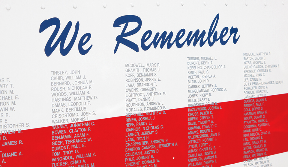 “One of the things that every single family wants is to know that the sacrifice that their dad or their mom, their husband or wife made is not forgotten,” Buck said. “So this project here, the act of putting all the names of the fallen on the plane, keeps their name alive and reminds the public of that sacrifice. The meaning that it holds for the families is pretty remarkable.”