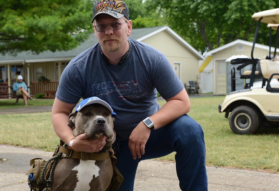 July 28, 2016 - Chris Thissen and his service dog, a 7-year-old pit bull named Peterbuilt, aren’t human and dog or owner and pet; they’re a team. Thissen served on active duty in the Marines for six years, including a nine-month tour in Iraq. Now he trains post-traumatic stress disorder service animals.