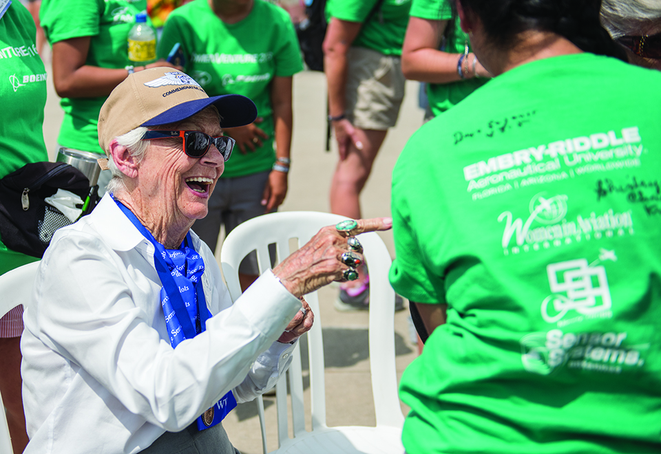 Seymour said she was excited at fly in the B-17 Aluminum Overcast during AirVenture. The WASP flight was scheduled for Friday night, with Aircraft Spruce & Specialty donating the flight.