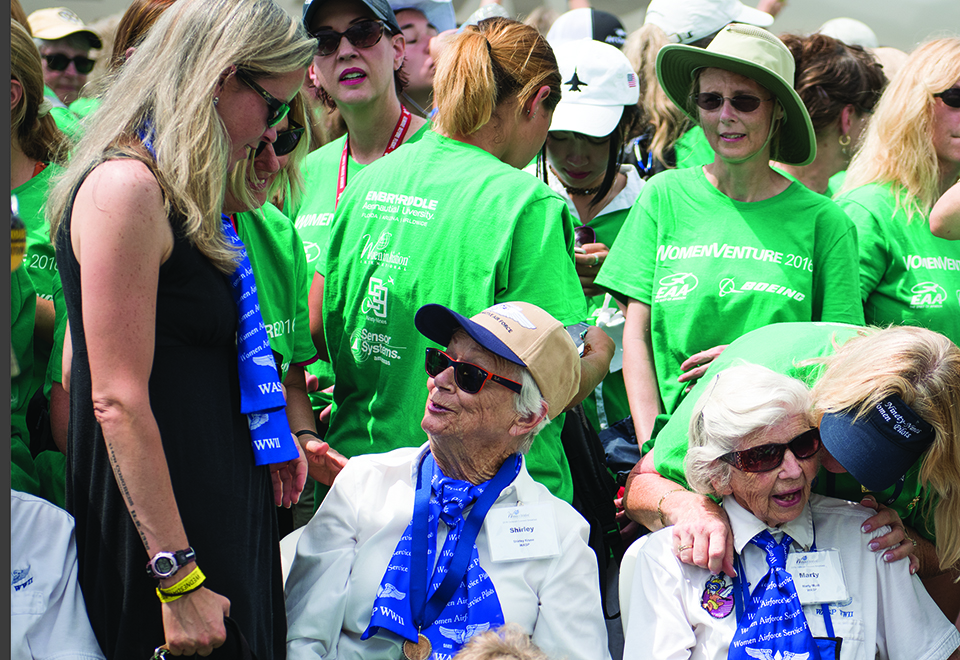 Three of the four women of WASP attending EAA AirVenture Oshkosh 2016 talked about their lives in a well-attended forum on Thursday. The fourth WASP, Shirely Kruse, had a good excuse for missing the forum — a last-minute opportunity to fly in a P-51 Mustang.