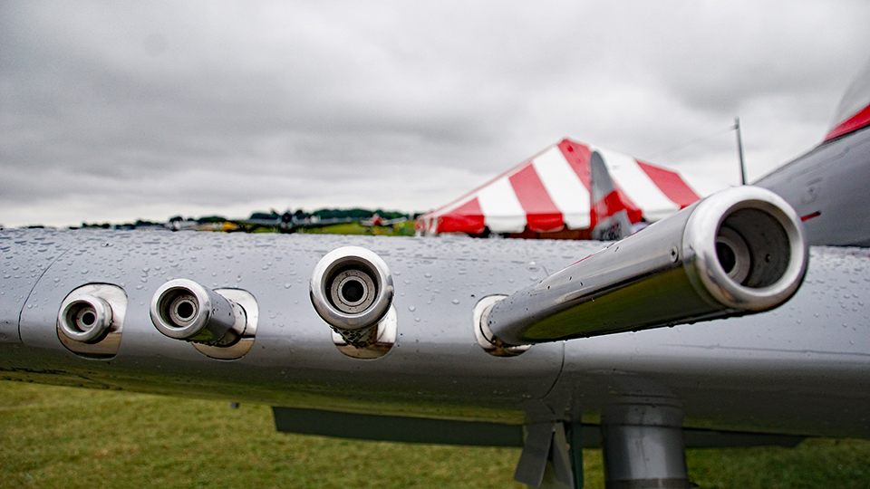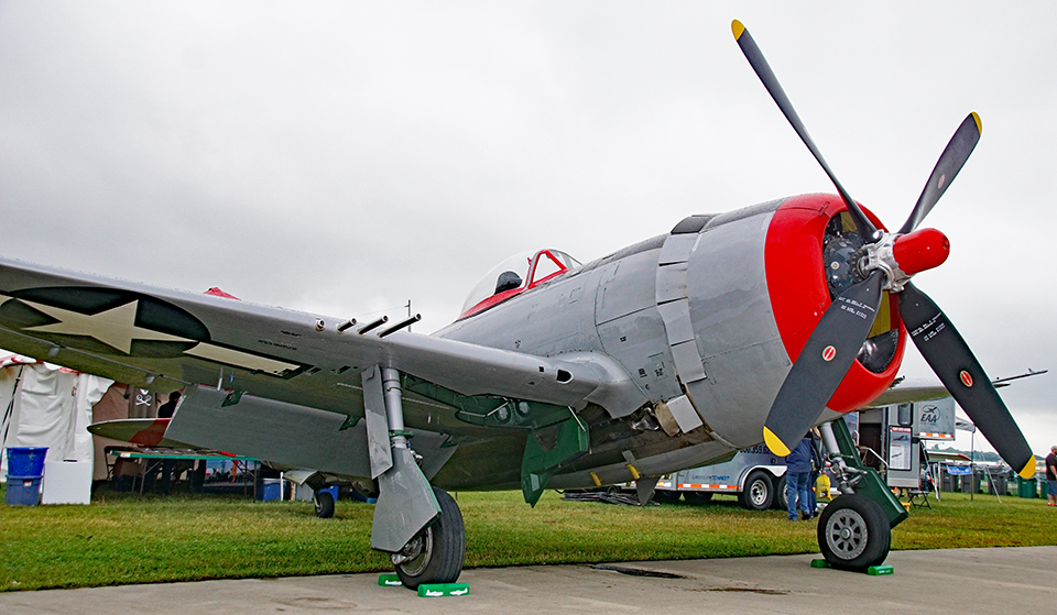 The P-47D, like the model on display, could fly faster than 440 mph at 29,000 feet. A whirling turbosupercharger helps the big R-2800 radial engine achieve this at altitude. John Penney, who flew the P-47 to AirVenture, said the turbo equipment adds 2,500 pounds to the weight of the Thunderbolt.