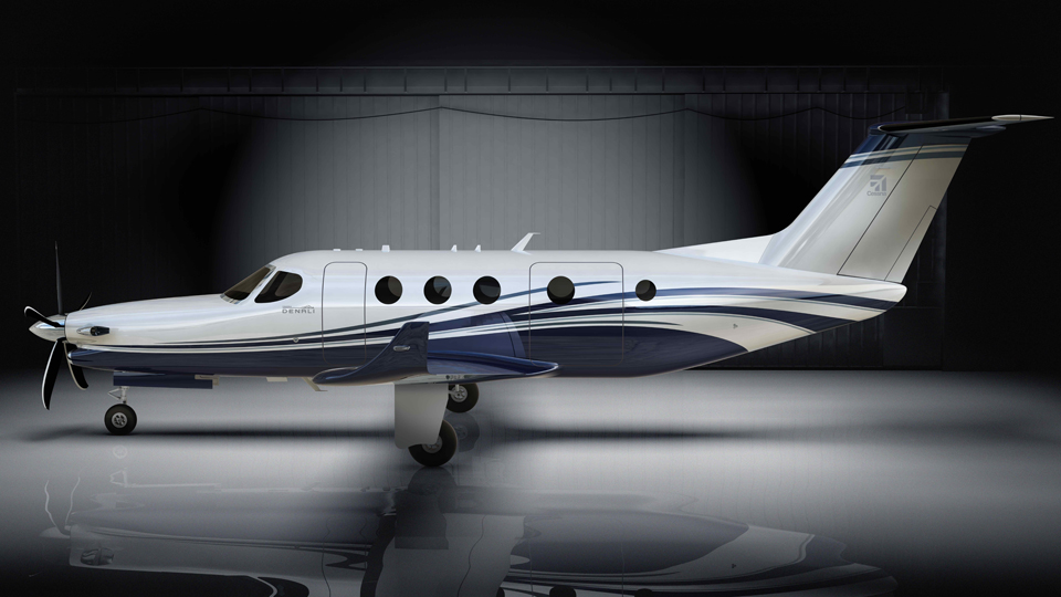Power will come from GE’s new advanced turboprop engine. The FADEC-equipped, 1,240 shp-rated turboprop engine is expected to ease pilot workload with single-lever power and propeller control. A McCauley 105-inch diameter composite, five-blade, full-feathering, constant-speed propeller will round out the propulsion package. A mock-up of the craft’s interior can be seen at Textron’s booth in the Main Aircraft Display area. Cessna.txtav.com/turboprop/denali