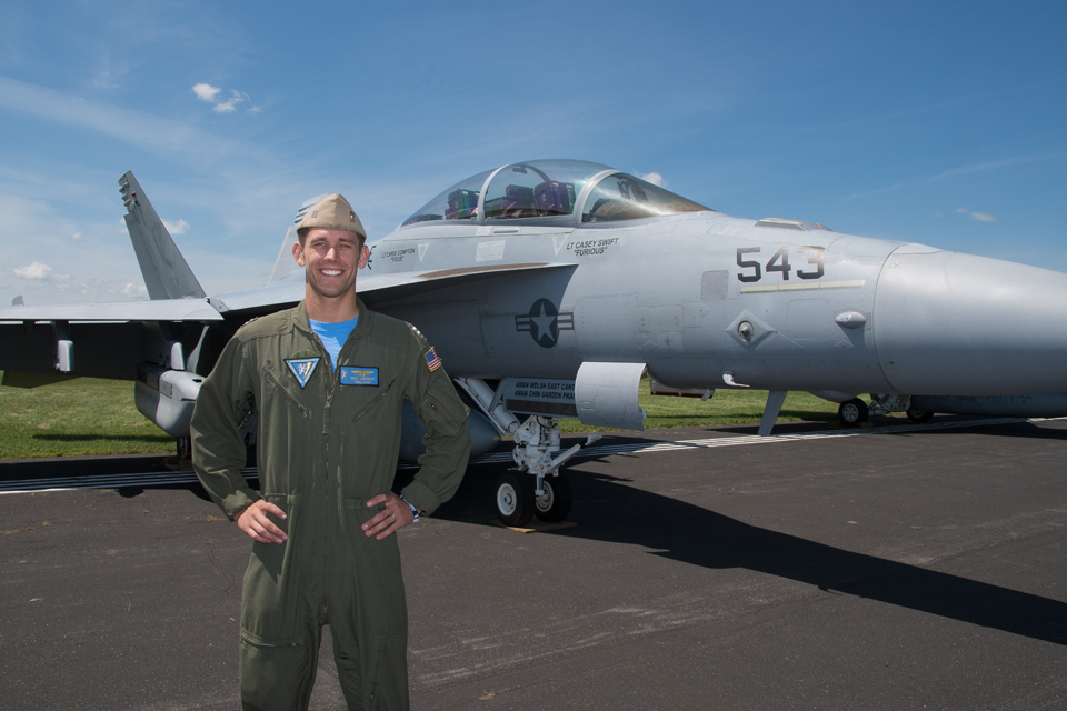 “After only 10 minutes, I said I wanted to land,” said Lietzan, now a lieutenant and U.S. Navy electronic tactics instructor for the EA-18G Growler. “It was an open cockpit airplane and I remember going through the clouds like I was touching them. Once we got on the ground, I knew I wanted to go back up.”