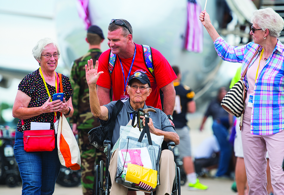 The Old Glory Honor Flight, partnered with EAA and American Airlines, was part of AirVenture’s Salute to Veterans Day. The flight took the veterans to Washington, D.C., for the day to visit various war memorials and honor them for their service and sacrifices.