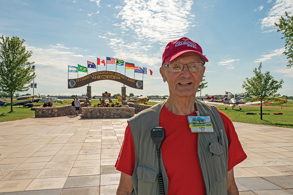 Beginning in the 1980s, Larry, EAA 285890, started volunteering as a flightline volunteer in the Vintage area. Currently, he’s the vice chairman of showplane aircraft and camper registration, helping to coordinate and assist arriving pilots.