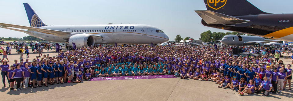 - Group photo on Boeing Plaza for all women in the aviation community.