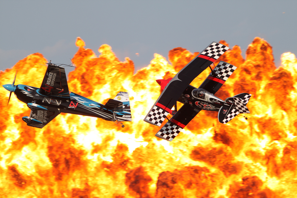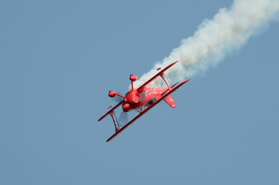 Day: Patriot Parachute Demo Team, Sean D. Tucker (Oracle Challenger III), Dassault Falcon 8X, Mike Goulian (Extra 330SC), Warbirds of America show, Philipp Steinbach (Game Bird 1), Jim Peitz (Beech Bonanza), John Klatt (Screamin’ Sasquatch), U.S.A.F. Heritage Flight (2 x A-10s and P-51), Bill Stein (Edge 540), David Martin (Bücker Jungmeister), Kirby Chambliss (Edge 540 and Red Bull Air Force wingsuits), Redline Airshows, U.S. Navy Blue Angels (diamond site orientation flight)