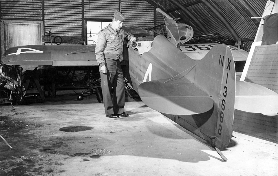 In its first Thompson Trophy Race in 1935 Bonzo finished second behind Harold Neumann in Mr. Mulligan. Flying Bonzo cross-country to the 1936 National Air Races in Los Angeles, Wittman landed in Cheyenne, Wyoming, where an engine backfire set Bonzo ablaze. The fire was quickly put out but the airplane was damaged too much to compete that year. A year later, at the 1937 Thompson Trophy Race, Wittman flew a rebuilt Bonzo to the fastest qualifying time — more than 275 mph. He led the field for 18 of the race’s 20 laps, until a rough engine forced him to throttle back and finish in fifth place. In the 1938 National Air Races, Wittman and Bonzo placed third and in 1939, in the last Thompson race before World War II, they placed fifth. Throughout its racing career, Bonzo faced competitors with more horsepower and more financial backing, yet remained a serious and respected adversary among unlimited pylon racers. In its final configuration, Bonzo could achieve 325 mph — faster than the fastest U.S. military fighter planes of the day — on just 485 hp.