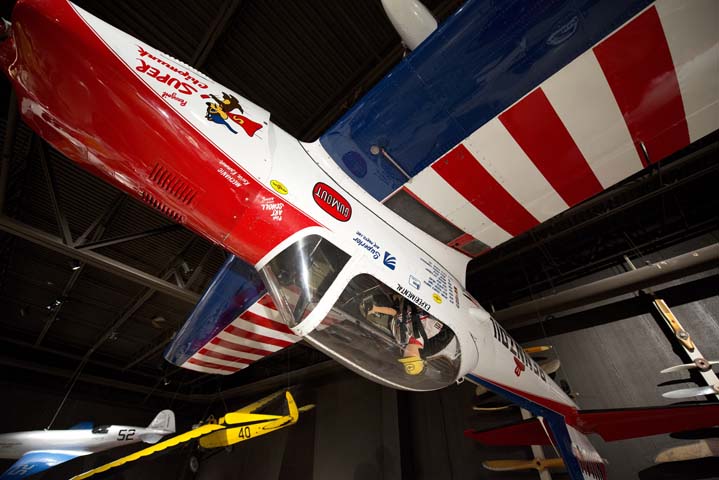 Befitting the aerobatic and air show careers of both the aircraft and Art Scholl, N1114V is displayed inverted performing a ribbon cutting maneuver.