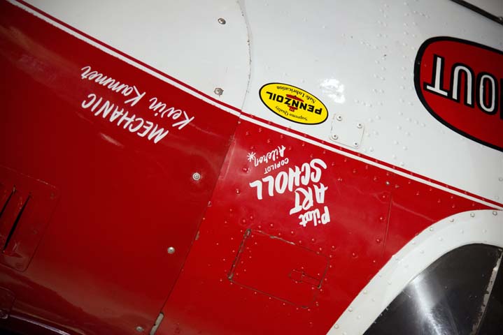 Art’s widow, Judy Scholl, elected to donate his remaining aircraft to museums. Chipmunk N13Y went to the National Air and Space Museum in Washington, D.C., and N1114V to the EAA AirVenture Museum. Kevin Killingworth and Kevin Kammer, Art’s chief mechanic, delivered it to Oshkosh on June 12, 1987 with 5,183.5 total hours on the tach. The ferry flight from Rialto, California, to Oshkosh via Albuquerque, New Mexico, and La Crosse, Wisconsin, took 13 and a half hours. Their arrival was highlighted by the operation of the three-color smoke system for the last time.