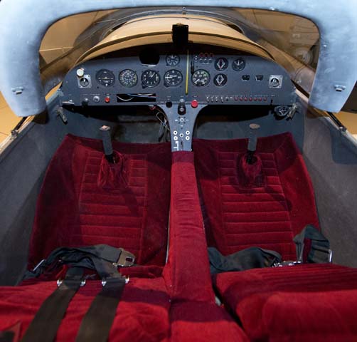 The Lancair 200 was designed as a two-place, side-by-side configuration with a wide speed range using the 100-hp Continental O-200 engine. Cockpit comfort was a major concern, so a conventional seating position with a seat back angle of less than 30 degrees was used, based on survey input. The cockpit measures 42-1/2 inches across and the canopy opens with a dual, spring-loaded system that provides entry room while the instrument panel remains covered at all times. The landing gear is a hydraulic retractable tricycle system following the Al Mooney approach — trailing arm link with compression “donut” suspension.