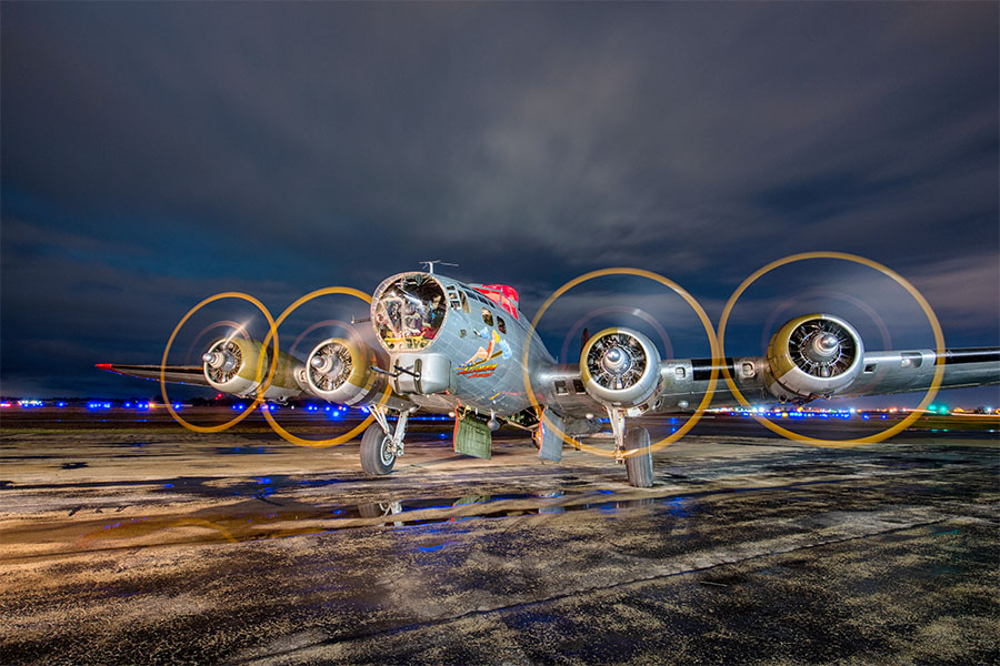 Aluminum Overcast is a B-17G-VE, Serial No. 44-85740 and was delivered to the U.S. Army Air Forces on May 18, 1945. Although it never saw action in World War II, the airplane has an interesting history. It was purchased as surplus from the military inventory for $750 in 1946. Flying more than 1 million miles it served as a cargo hauler, an aerial mapping platform and in pest control and forest dusting applications. In 1978 the airplane was purchased by "B-17s Around the World," a group of investors wanting to preserve its heritage. However, the economic reality of simply maintaining a vintage bomber, let alone the cost of restoration, prompted the group to donate the B-17 to EAA in 1983.