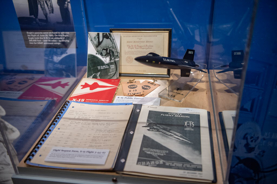 The youngest person selected to become an astronaut and the first person to pilot two different winged vehicles into space, Engle has gone from Cessnas to Super Sabres to the space shuttle. The Engle Collection features artifacts from Engle’s personal and professional journey to the edge of space and beyond.