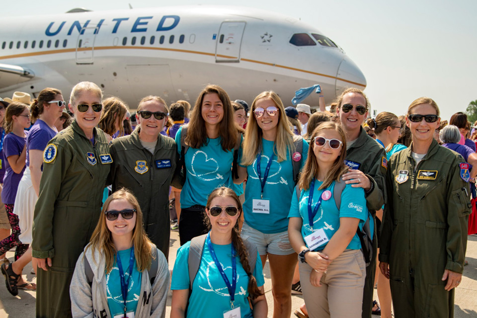 - Group photo on Boeing Plaza for all women in the aviation community.