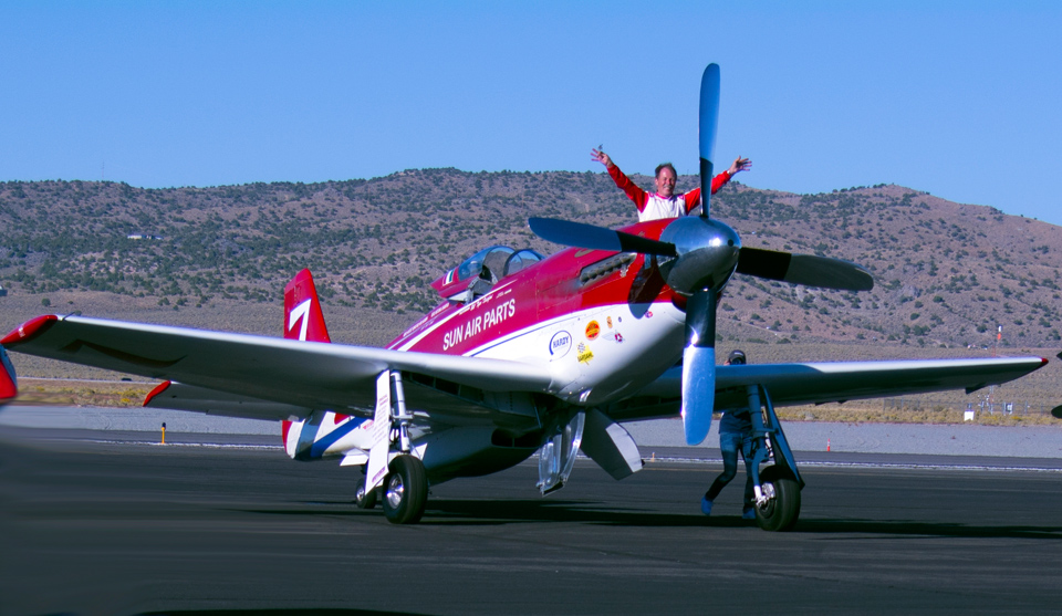 As the current world air speed record holder, Rare Bear was looking to win for the first time in years. Arrayed against it was the younger, faster Steve Hinton in a modified P-51D airframe known as VooDoo and in the “older, just as fast” category was an astronaut, shuttle pilot, and ambassador to aviation named Hoot Gibson. Hoot, perhaps one of the nicest people ever created, was a picture of aplomb throughout race week and always willing to greet supporters and friends with a smile.